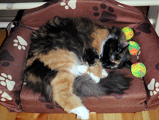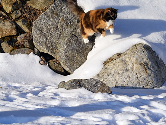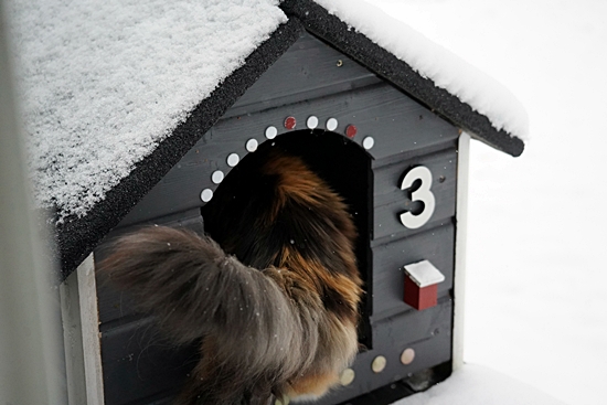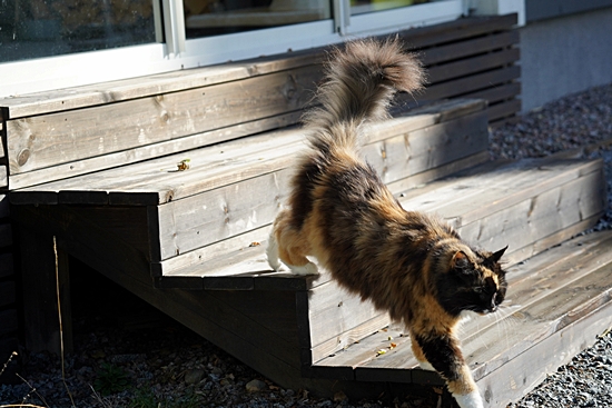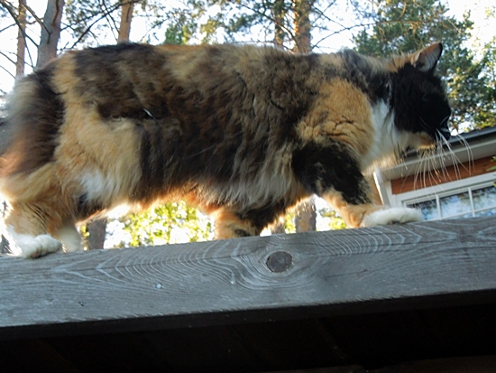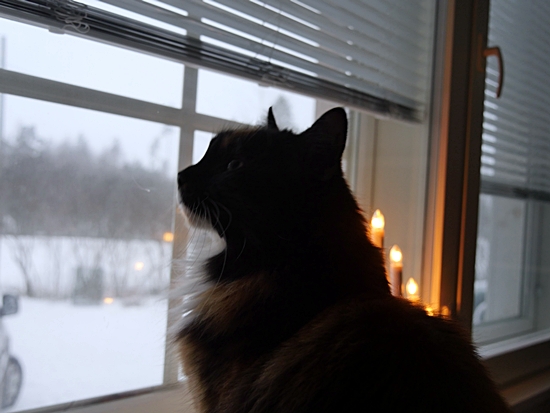 Viimeiseen puoleen vuoteen ei ulkona oloa ollut kuin muutama minuutti per kerta, ja nyt talvella käännyttiin ovelta takasin suoraan sisälle. Ikä voitti seikkailuhalun. Tassuaskel lyheni loppuen kokonaan.
